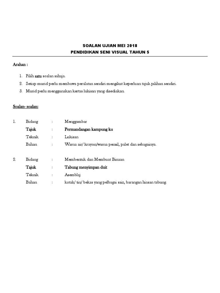 Related : Soalan Psv Tahun 5 2018 - Jadual dan soalan kerja kursus pendidikan seni visual spm 2020..